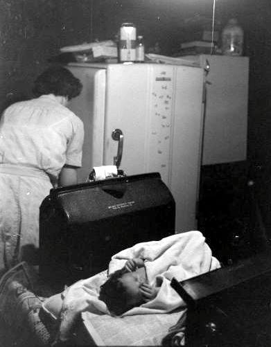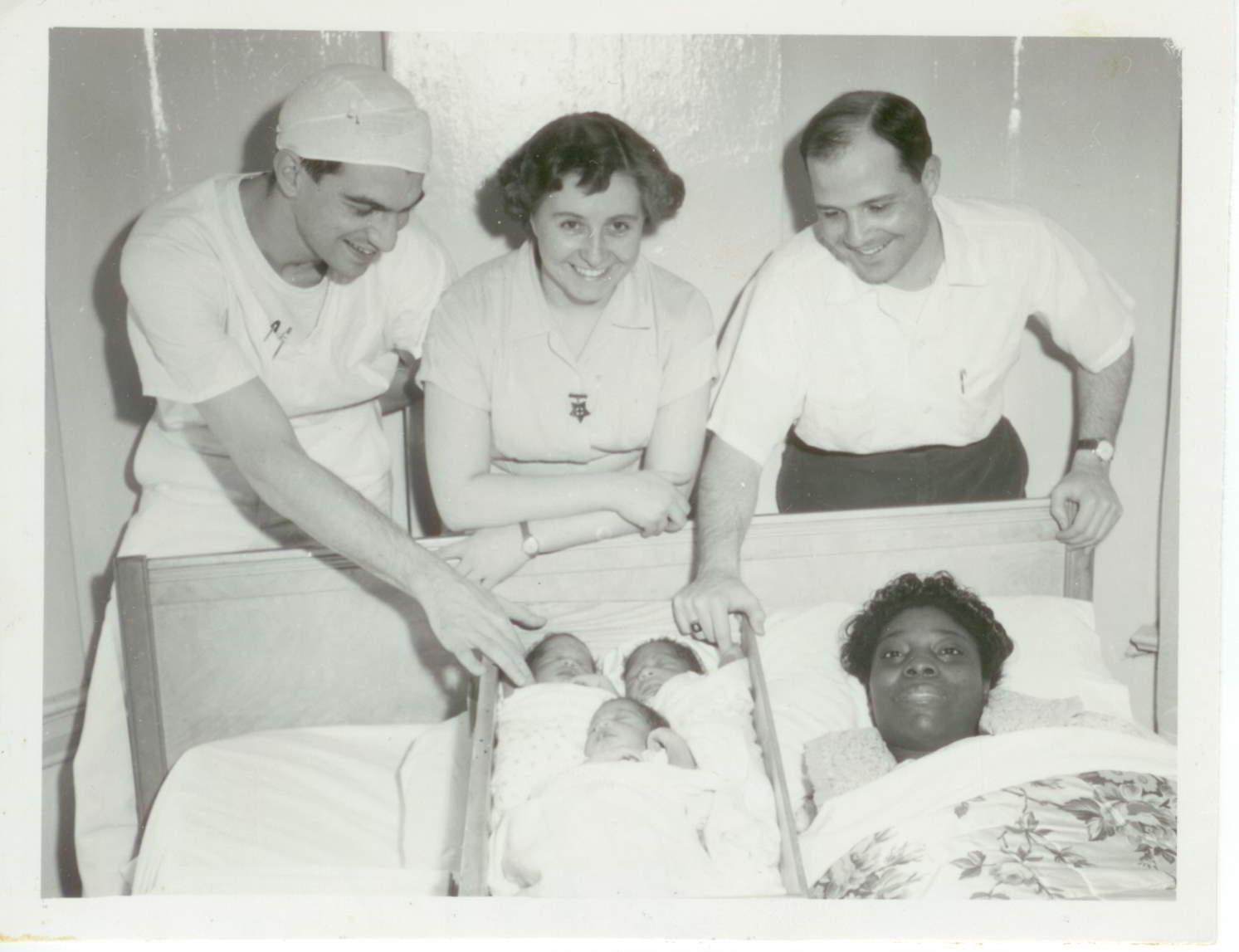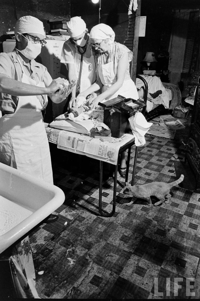 Med student, Resident doctor and Dr. Beatrice Tucker examine the newborn baby (credit: LIFE magazine)